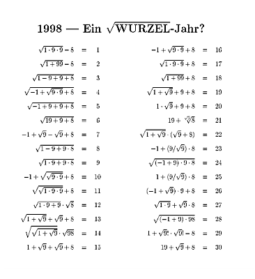 Bundeswettbewerb Mathematik 1998 Aufgaben der ersten Runde |